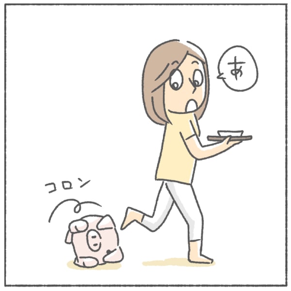 食器を片付けるとき、床に置いてたブタのぬいぐるみに足が引っ掛かりひっくり返ってしまった。
