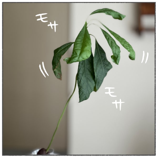 絵日記夏場、成長が止まっていたアボカド。