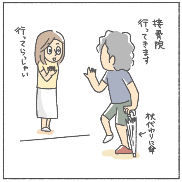 傘を杖代わりに、タクシーで近所の接骨院で診てもらった。